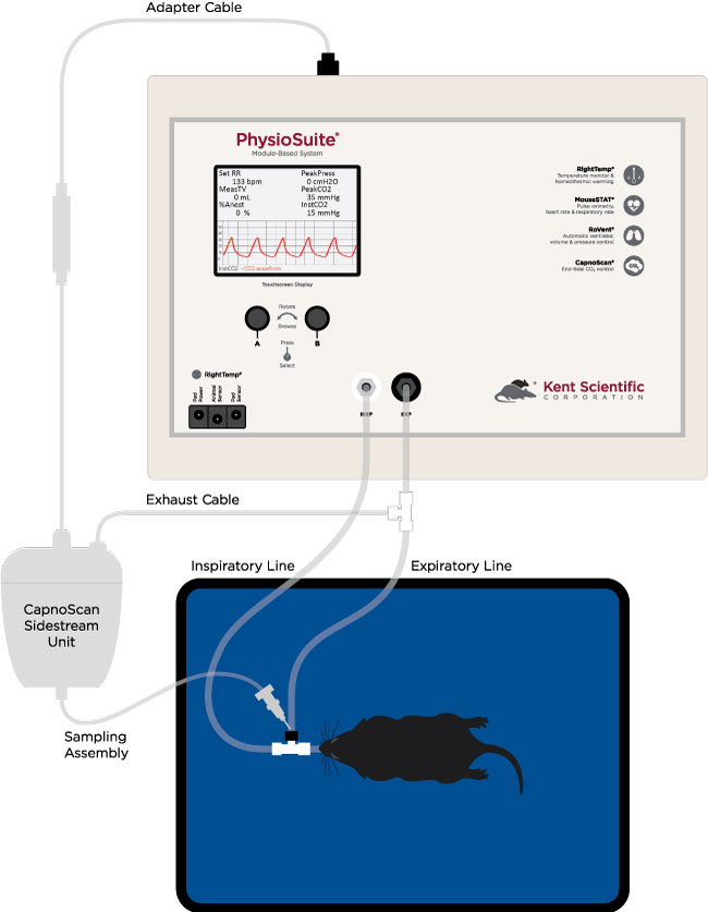 CapnoScan® provides real-time capnography and sidestream sampling. To obtain end-tidal CO2 measurements, CapnoScan requires the animal be intubated and ventilated.